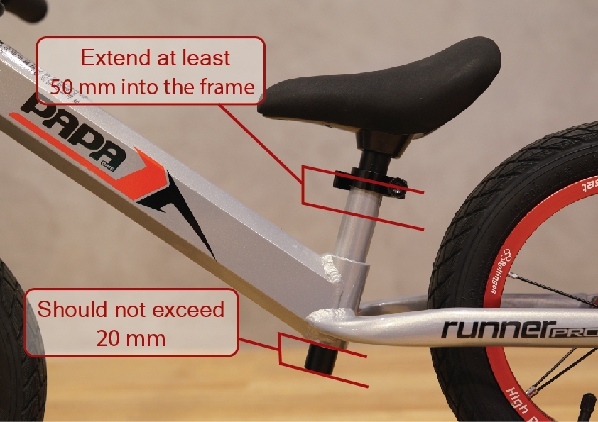 - The seatpost must extend at least 50 millimeters into the frame and no more than 20 millimeters below the bottom of the frame.